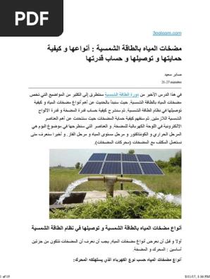 مضخات المياه بالطاقة الشمسية أنواعها و كيفية حمايتها و توصيلها و حساب قدرتها