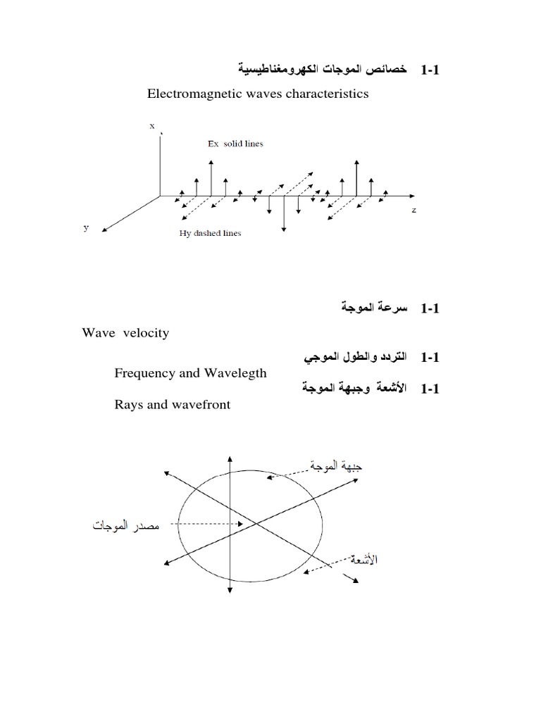 تقوم الموجة الكهرومغناطيسية بحمل طاقة مستمرة ونقلها بعيدا عن مصدرها ويطلق عليها اسم الطاقة الإشعاعية علما بأن هذا الوضع لا ينطق بتاتا على الحقل الواقع بالقرب من المجال الكهرومغناطيسي عدا عن الطاقة تحمل. ونحسب تردد الشعاع من العلاقة. ع ل ت وتقاس سرعة الموجة بوحدة. ومن هذه العلاقة نستنج ان طول الموجة ع ت.